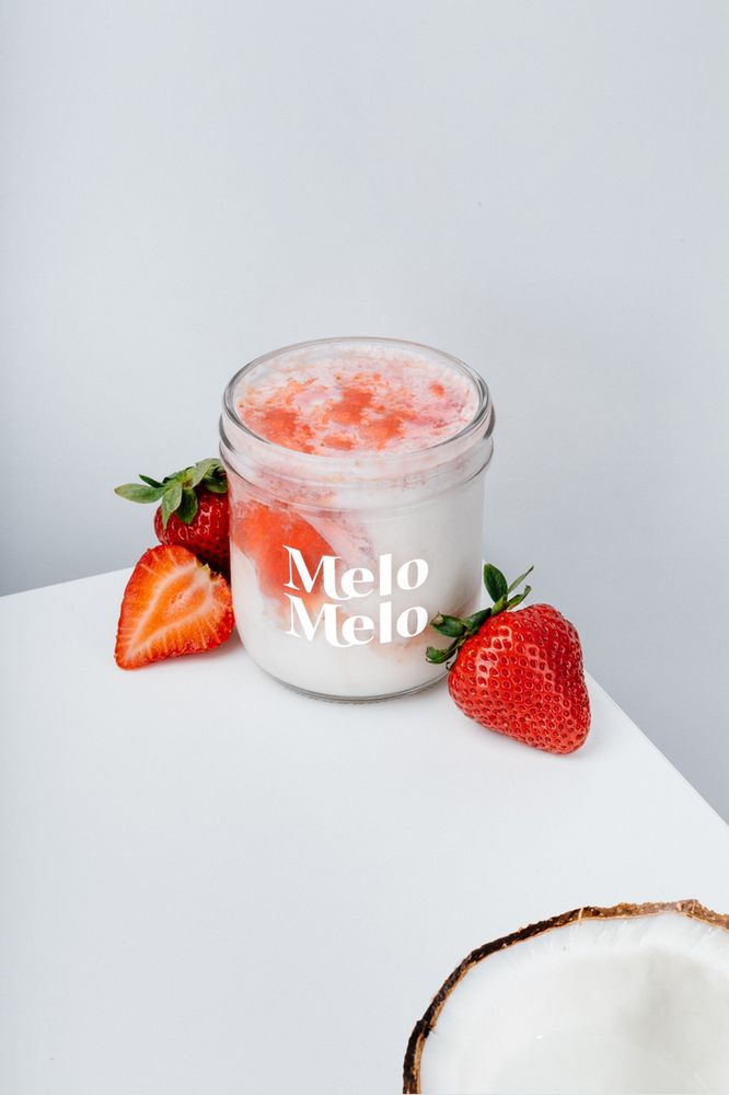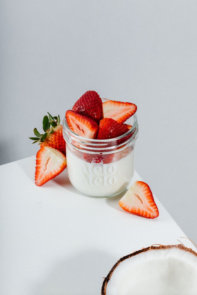 Our original coconut jelly topped with freshly cut strawberries. *Contains Dairy